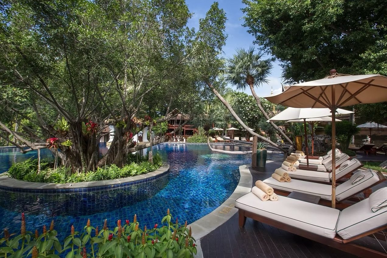 Additionally, there is an abundance of amenities at Dhara Dhevi with a choice of swimming settings including the spa pool and the massive resort waterway with an integrated Jacuzzi inside of it. Surrounded by plush palapas and complemented by phenomenal service, this lounge area offers an invitation to indulge in leisure at its best. Very accommodating for both adults in search of an exotic cultural immersion with urban respite, this destination is also very well suited as an educational foray and fun-filled adventure for families with children.