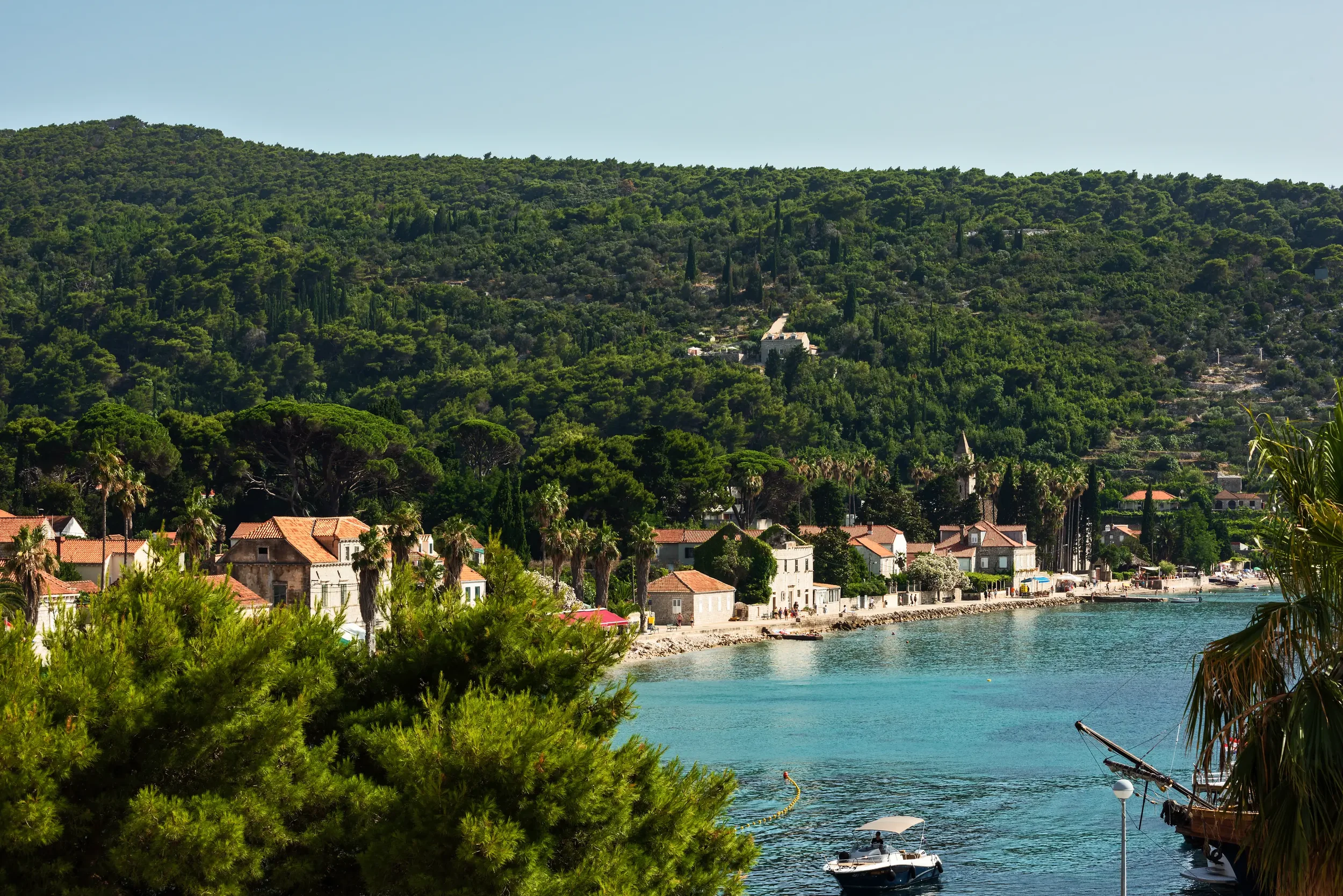 Lopud has no traffic, no sprawling marina scene, and none of the visual clutter that can accompany more developed summer destinations. Stone lanes, palms, citrus trees, church towers, gardens, and sea views define the landscape. The pace is slower, but never sleepy. It feels elegant rather than staged.