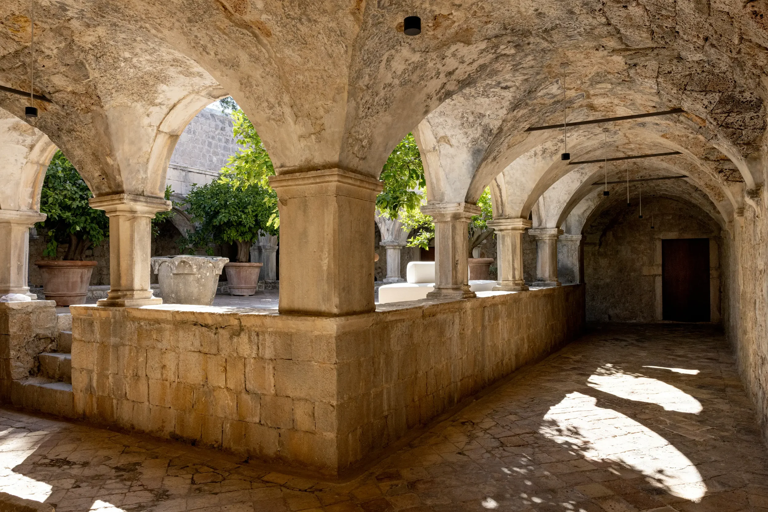 Guests can spend the day exploring Lopud’s beaches and paths, set out by boat through the island chain, visit Dubrovnik’s Old Town, or simply remain within the monastery walls and let the day unfold between gardens, terraces, beach, and sea.